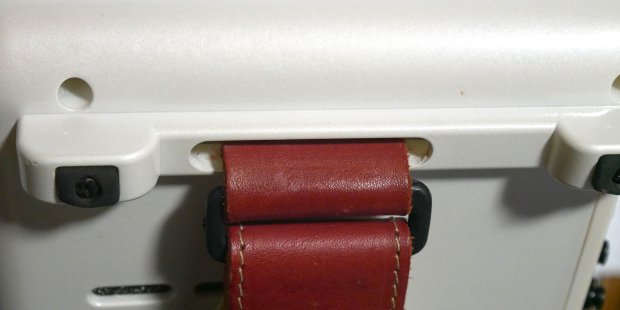 昨日、新しいストラップが届いたが、少し華奢なので、現在のものをそのまま使うことにした。横のベルトが付くタイプだったので、それだけとりだして長さを調節して今のに付けました。