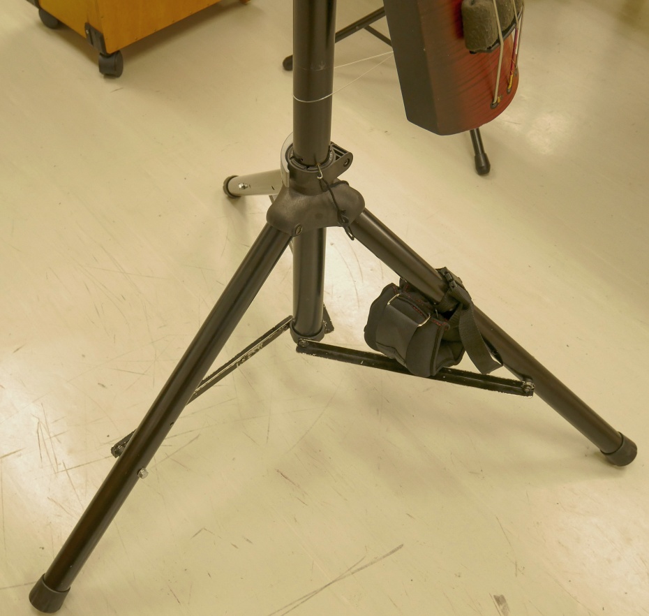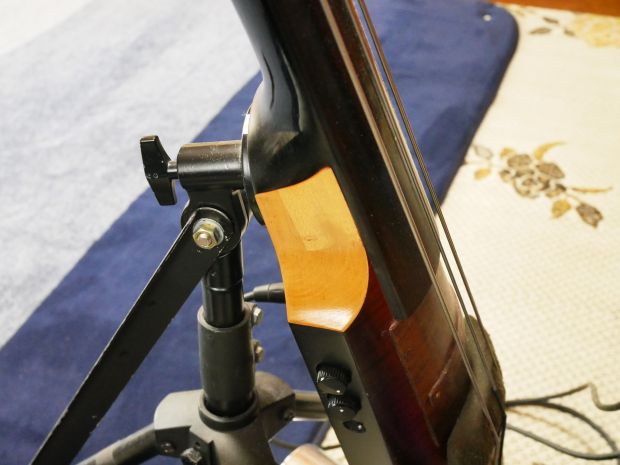 以前、コントラバスで使用していたファイバー製のものをステンレスパイプで長さを調整して使用しました。