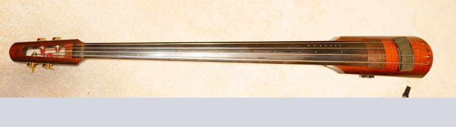 弦長は106mmでしたが、コントラバスの弦長に合わせ104に、サドルを20mm移動しております。少し張りが緩くなった感じですが、特に音色的な違いは生じていないと思います。ただ、ポジションマークが低いほうでずれていますので、全くあてになりません。