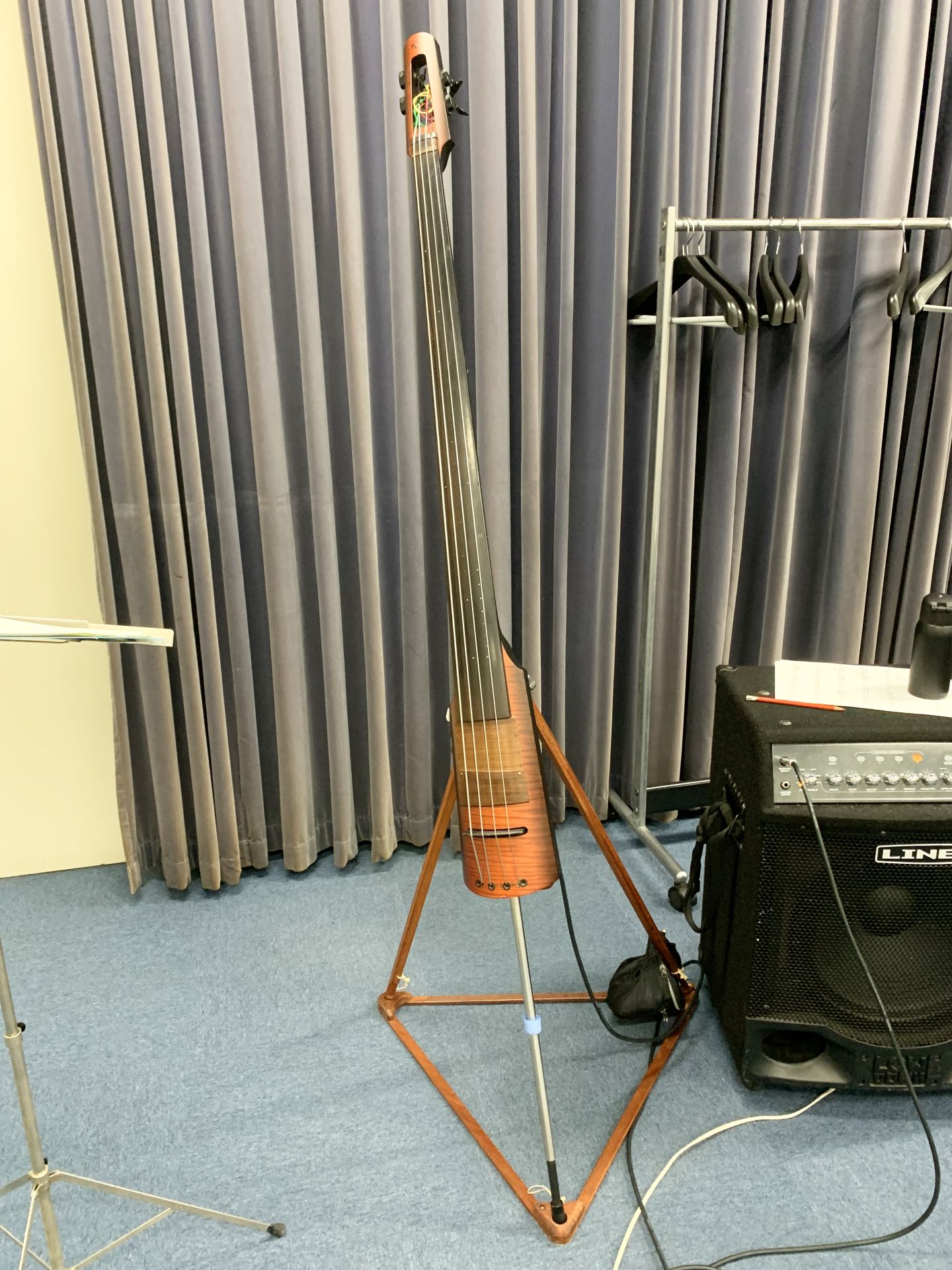 コントラバスに踏み込む前の段階では、これは正解であったのかなあと今でも思っています。ただその後、オリジナルスタンドは少し剛性が足りない為、別の改造(スピーカー)スタンドに交換しました。