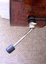 さて、自作エンドピン(マホガニー)ですが、写真のとおり21φで、ただ差し込むだけの簡単な作りです。穴はすでにテーパーを付けてありますので、あとは自分の高さに合わせて長さを決めるだけです。エンドゴムは、ステッキ用を購入。エンドピンホルダ付近で少しグラグラしますが、使えないことはない。しばらくは2本持ちで行こう。