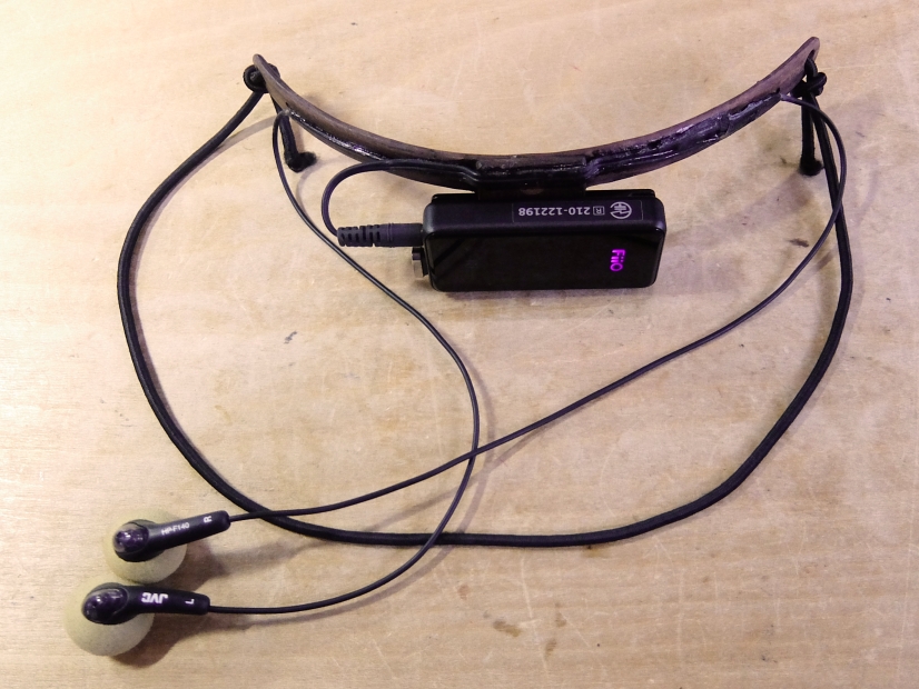 新たに、100円ショップを散策中、いい感じのカチューシャを発見したので、早速取り付けて使ってみた。 少しずれる感じがあるが、全面の紐が消えたのでスマートになった感じ。