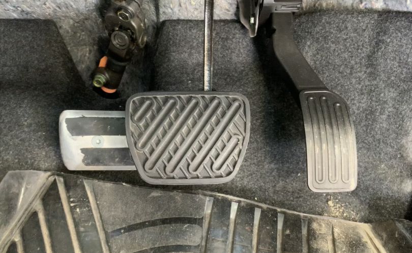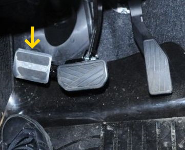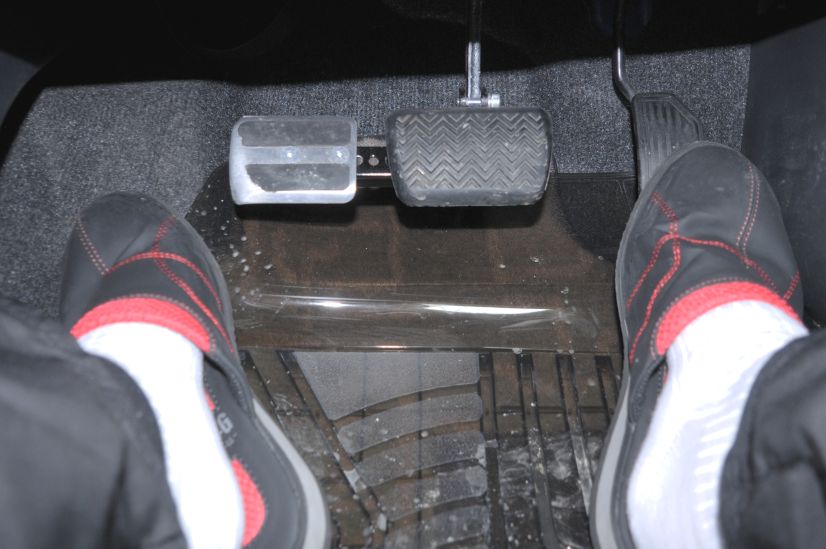 ブレーキペダル左側の少し低い位置にペダルを増設しておけば、踏み替えは比較的短時間でできる。