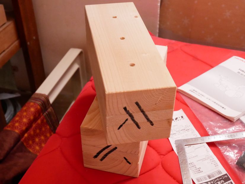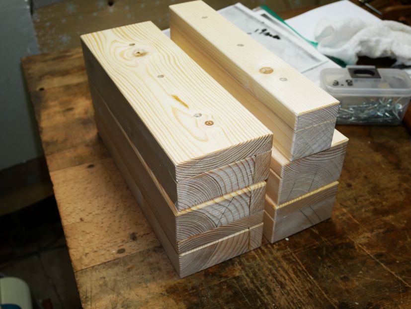 今回は、ホームセンターで、2×4の厚み19と38㎜を買い使いました。