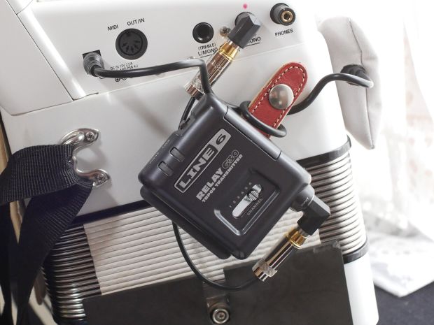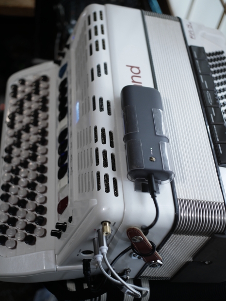 アコーディオンの無線化計画の方はというと、実はトランスミッターをバッテリーケースから外してしまいました。