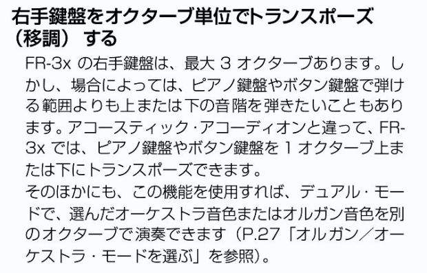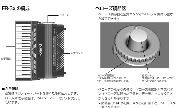 私の買ったFR-3sbは一世代前の型ですが、フリーベースの音色にオーケストラ音色(7個)が選べるということは大変ラッキーなことでした。