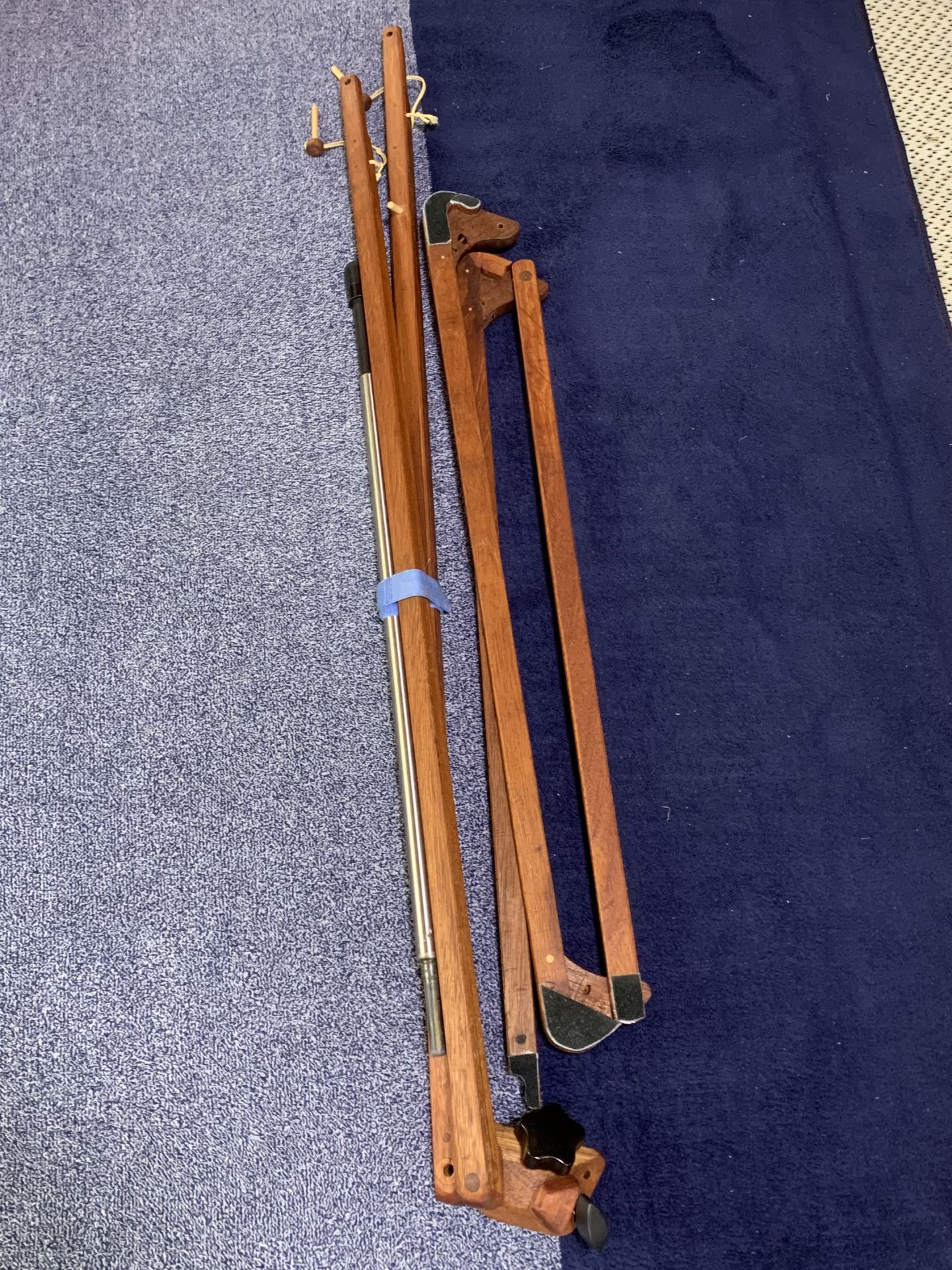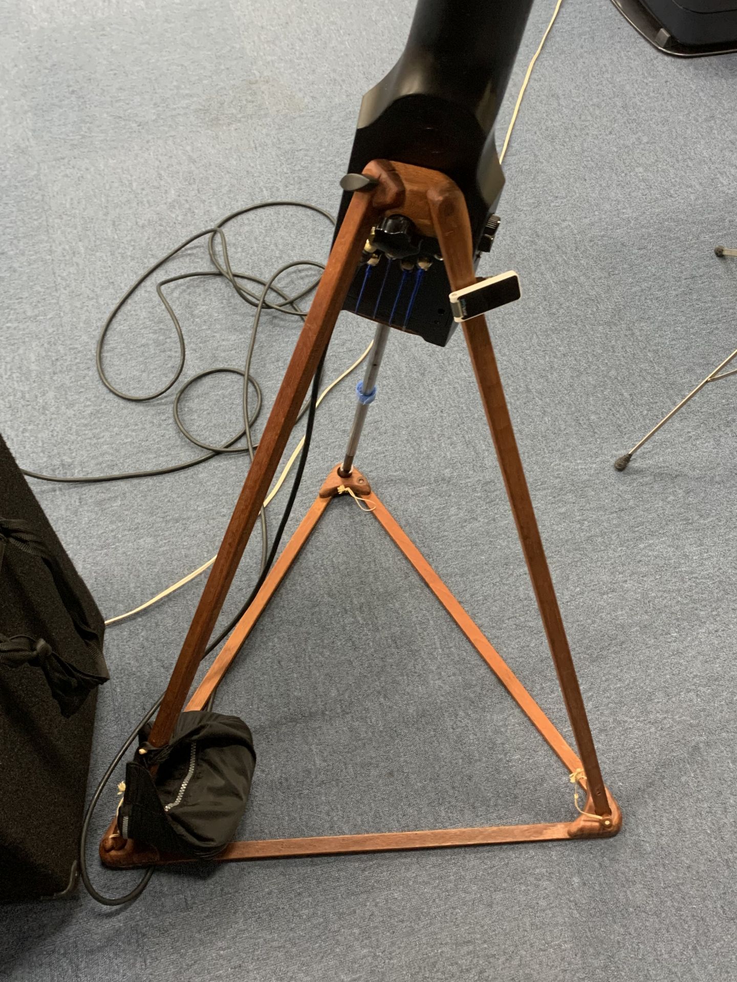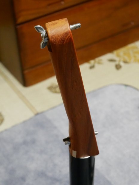 以前、コントラバスで使用していたファイバー製のものをステンレスパイプで長さを調整して使用しました。
