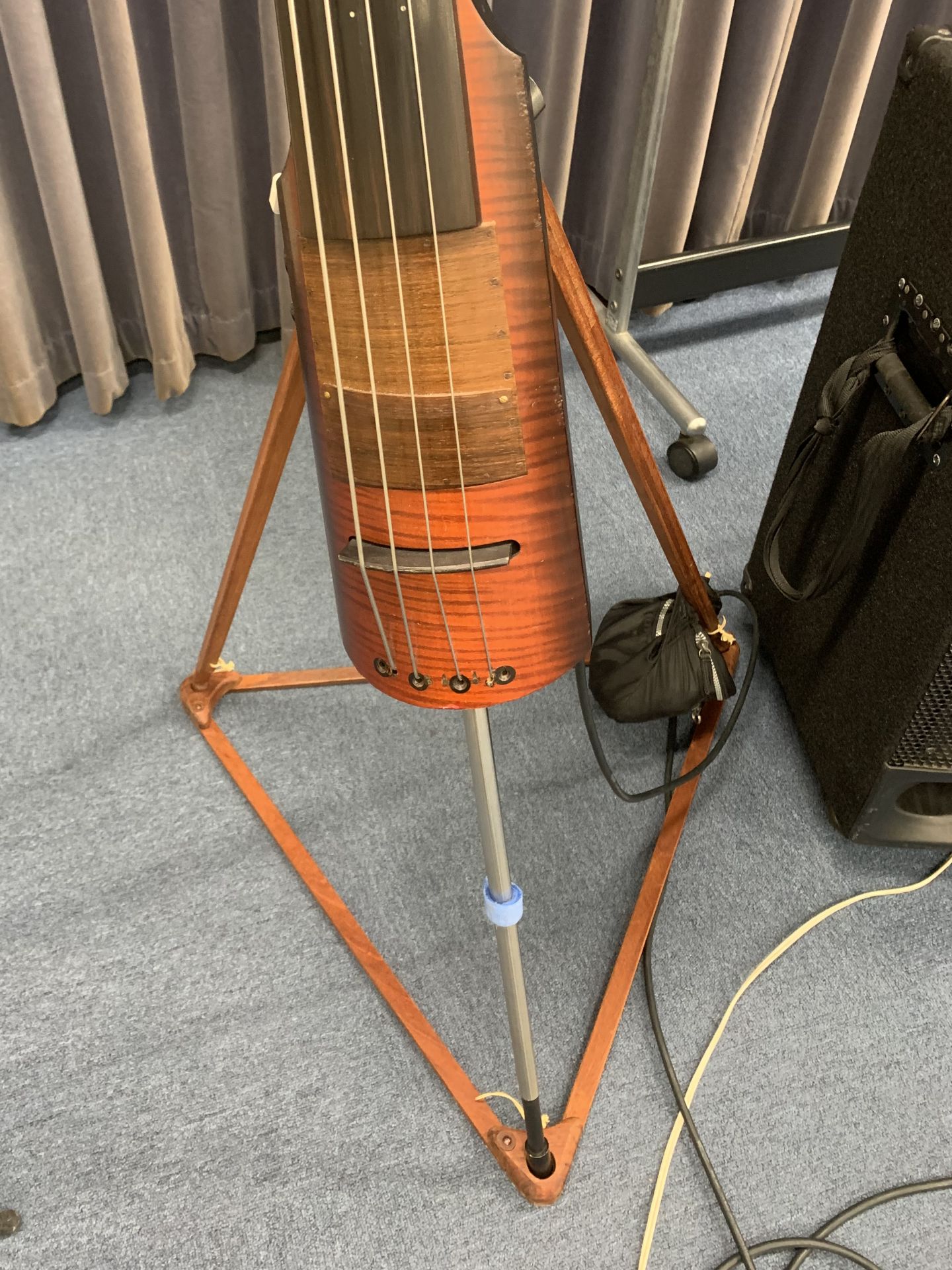 コントラバスに踏み込む前の段階では、これは正解であったのかなあと今でも思っています。ただその後、オリジナルスタンドは少し剛性が足りない為、別の改造(スピーカー)スタンドに交換しました。