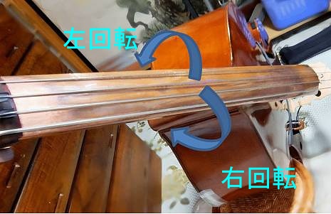 問題は左で、とくに指板の低音(ペグ)側に来ると反時計回り(左回転)の力が大きくかかります。