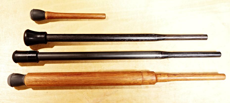 2016/09/23上から、マホガニー(座奏用)、ハカランダ、カーボン、マホガニー、すべて自作(改造)。