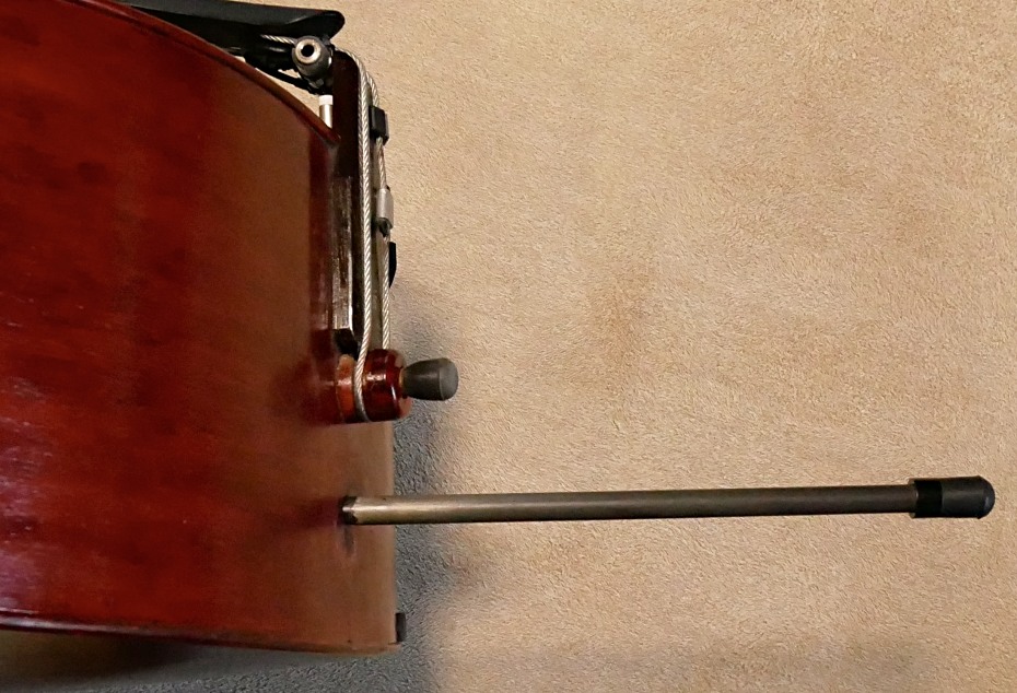 本来のエンドピンホルダは写真のように短くカット、座奏用に常時エンドピンを差し込んでおくことにし、タイトボンドで接着しました。