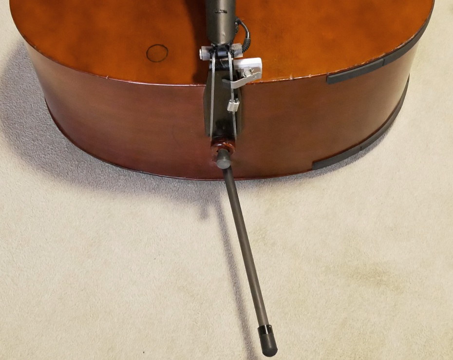 ネットで調べていると、クラッシックではエンドピンをオフセットしている楽器があり、それ用の曲がったエンドピンも販売されているようです。