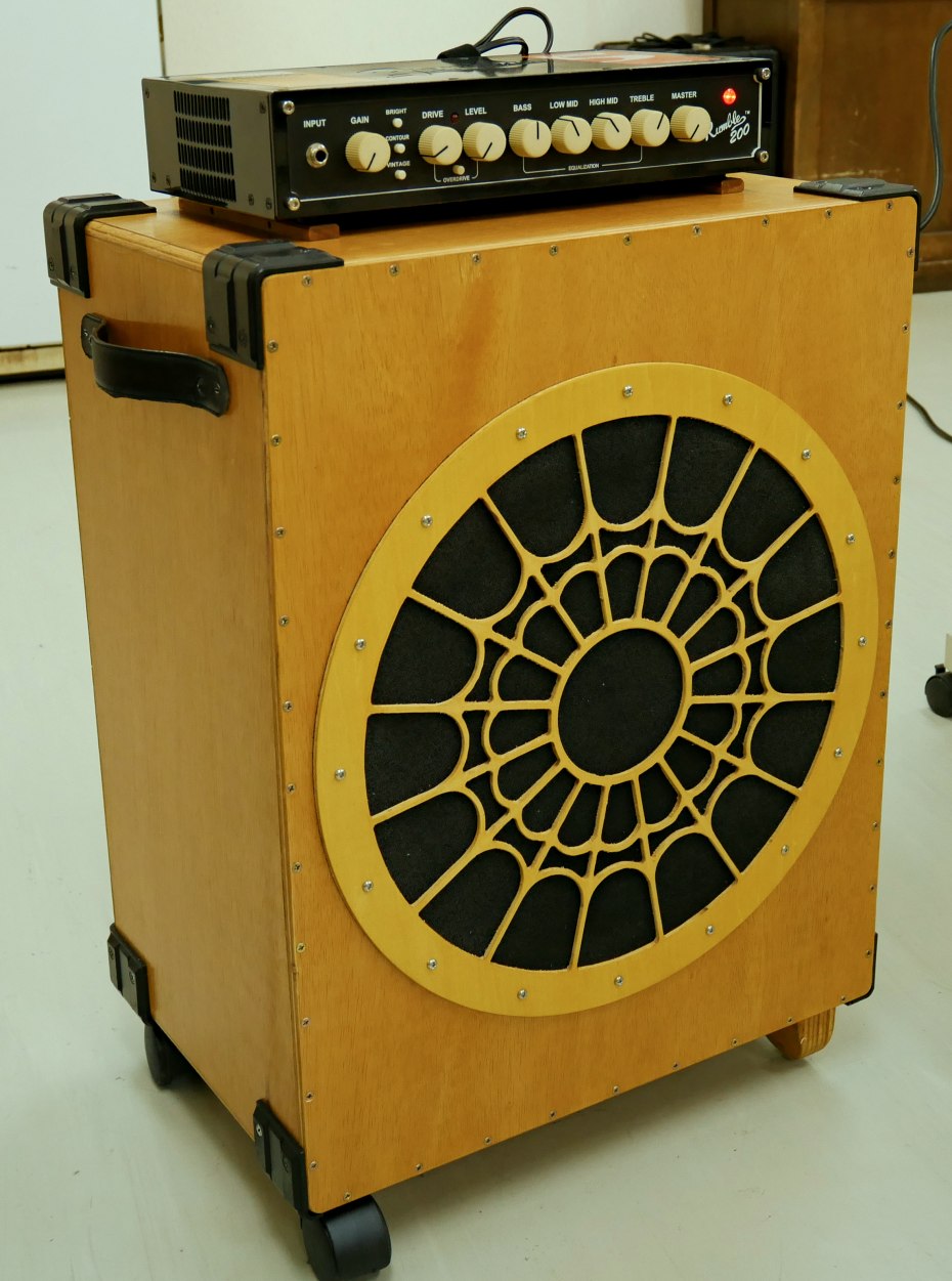練習では、前キャビとの差は感じなかったのですが、ホールでは手ごたえが少し減ったような感じがしました。アンプのボリュームいうと、前作は2時でOKが、今作は2時半程度で同程度の音量でした。まあキャビの容積が87%程度になっているので、こんなもんかなあ。コンサートでは、遠目にも目立ちなかなかキュートな感じが良かったか。