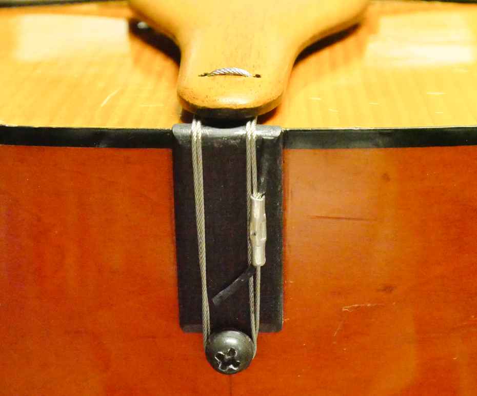 ご覧のようなテールピースとエンドピンを新たに作り、スチールワイヤーで