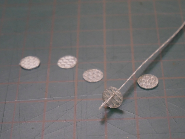 これで、押さえの丸い部分をPPバンドで作ることができ、さらに刀のつばのような感じで末端を処理することが簡単にできた。